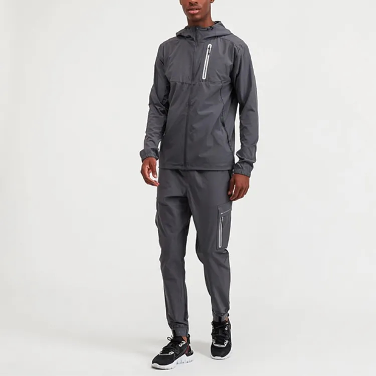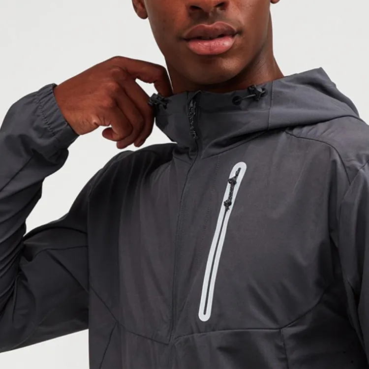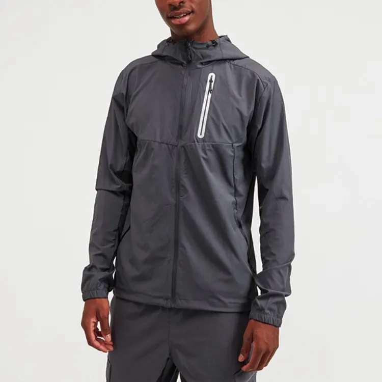 custom logo sport wear zip up woven windbreaker jackets man workout light weight soft shall drawstring running utility jacket